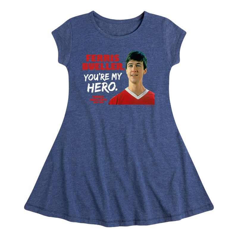 فستان فيريس بيولر داي أوف - فيريس ماي هيرو - فستان ضيق وواسع للفتيات الصغيرات والشابات - استمتعي بيوم العطلة مع أزياء فيريس بيولر داي أوف الجرافيكية. تتميز هذه التصاميم بشخصيات فيريس وكاميرون وسلون، وتجسد روح الانطلاق واللحظات المتمردة لهذا الفستان الكلاسيكي الشهير للمراهقين.
