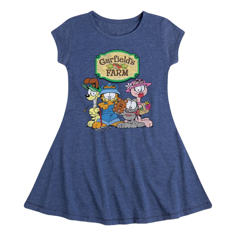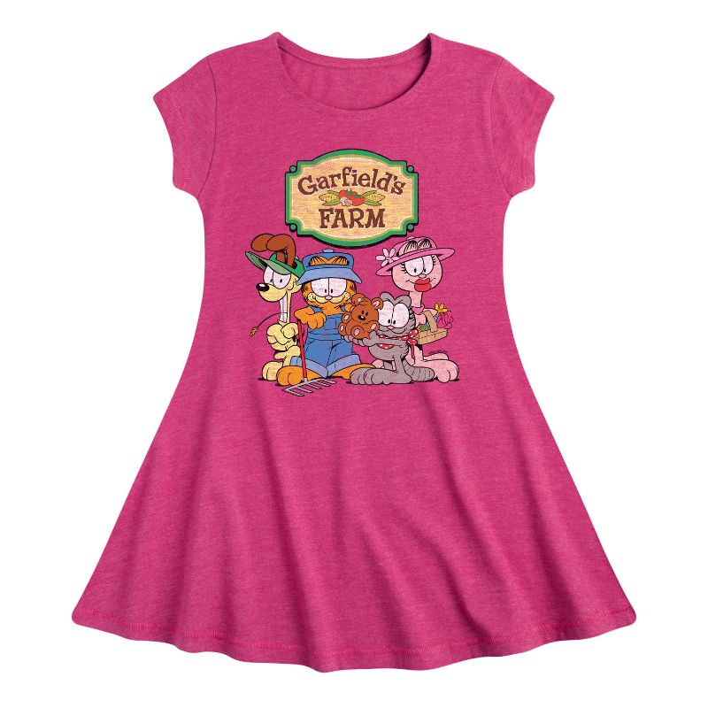 غارفيلد - مجموعة غارفيلدز فارم - فستان بقصّة واسعة للفتيات الصغيرات والشابات - أضفِ لمسةً من الفكاهة والكسل إلى خزانة ملابسكِ مع ملابس غارفيلد الجرافيكية. تُجسّد هذه التصاميم غارفيلد وأودي وجون، وتُحتفي بالقصص المصورة الشهيرة وشخصياتها المحبوبة.