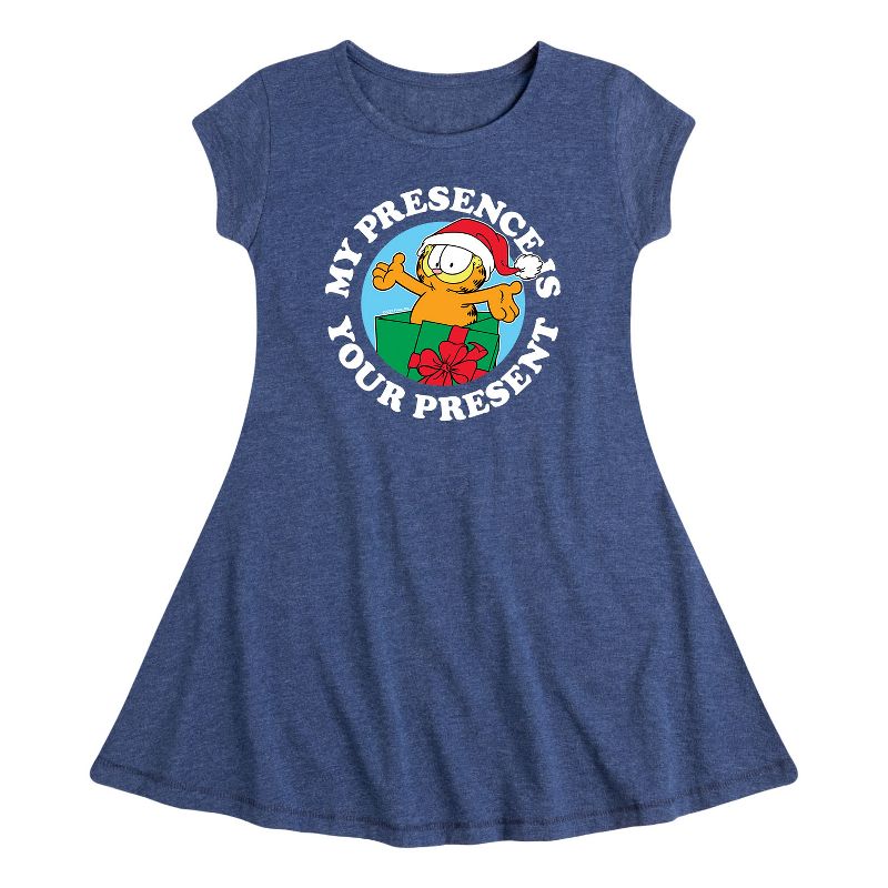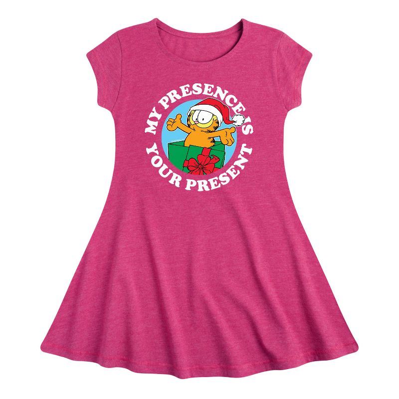 فستان غارفيلد - حضوري هو هديتك - مناسب للفتيات الصغيرات والشابات - أضفِ لمسةً من الفكاهة والكسل إلى خزانة ملابسك مع ملابس غارفيلد الجرافيكية. تتميز هذه التصاميم بشخصيات غارفيلد وأودي وجون، وتحتفل بالقصص المصورة الشهيرة وشخصياتها المحبوبة.