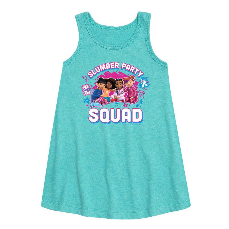 عالم كارما - فرقة فتيات - فرقة حفلات نوم - فستان بقصة حرف A للفتيات الصغيرات والشابات - انطلقي في رحلة التعبير عن الذات والثقة مع ملابس جرافيكية مستوحاة من عالم كارما. تتميز كل قطعة بتصاميم نابضة بالحياة، ورسائل مُلهمة، وشخصيات من المسلسل الشهير، وتحتفل بالإبداع والتفرد وقوة الكلمات. مثالية لعشاق كارما وموسيقاها، تضفي هذه المجموعة لمسة من الإيجابية والأناقة على كل إطلالة ولحظة.