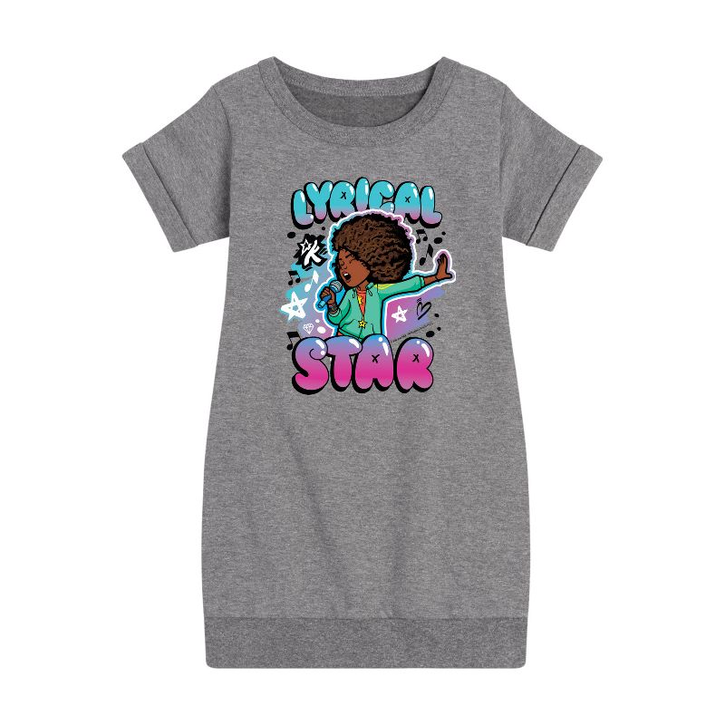 عالم كارما - فستان صوف بتصميم نجمة غنائية بنمط رش الهواء - للفتيات الصغيرات والشابات - انطلقي في رحلة التعبير عن الذات والثقة مع ملابس جرافيكية مستوحاة من عالم كارما. تتميز كل قطعة بتصاميم نابضة بالحياة، ورسائل ملهمة، وشخصيات من المسلسل الشهير، وتحتفل بالإبداع والتفرد وقوة الكلمات. مثالية لعشاق كارما وموسيقاها، تضفي هذه المجموعة لمسة من الإيجابية والأناقة على كل إطلالة ولحظة.