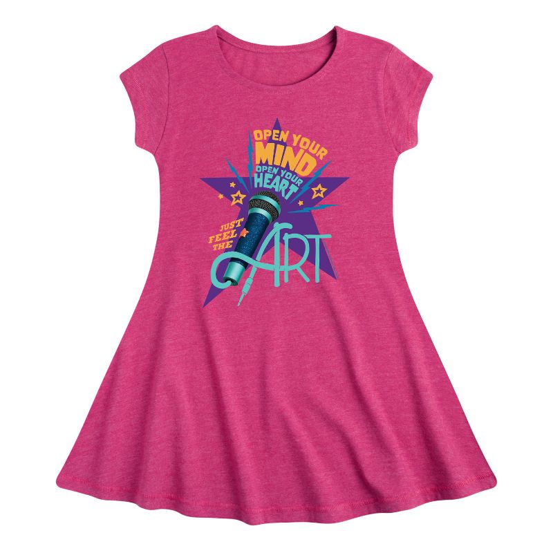 عالم كارما - افتحي عقلكِ، افتحي قلبكِ - فستان ضيق وواسع للفتيات الصغيرات والشابات - انطلقي للتعبير عن نفسكِ وثقتكِ بنفسكِ مع ملابس جرافيكية مستوحاة من عالم كارما. تتميز كل قطعة بتصاميم نابضة بالحياة، ورسائل مُلهمة، وشخصيات من المسلسل الشهير، تحتفي بالإبداع والتفرد وقوة الكلمات. مثالية لعشاق كارما وموسيقاها، تضفي هذه المجموعة لمسةً من الإيجابية والأناقة على كل إطلالة ولحظة.