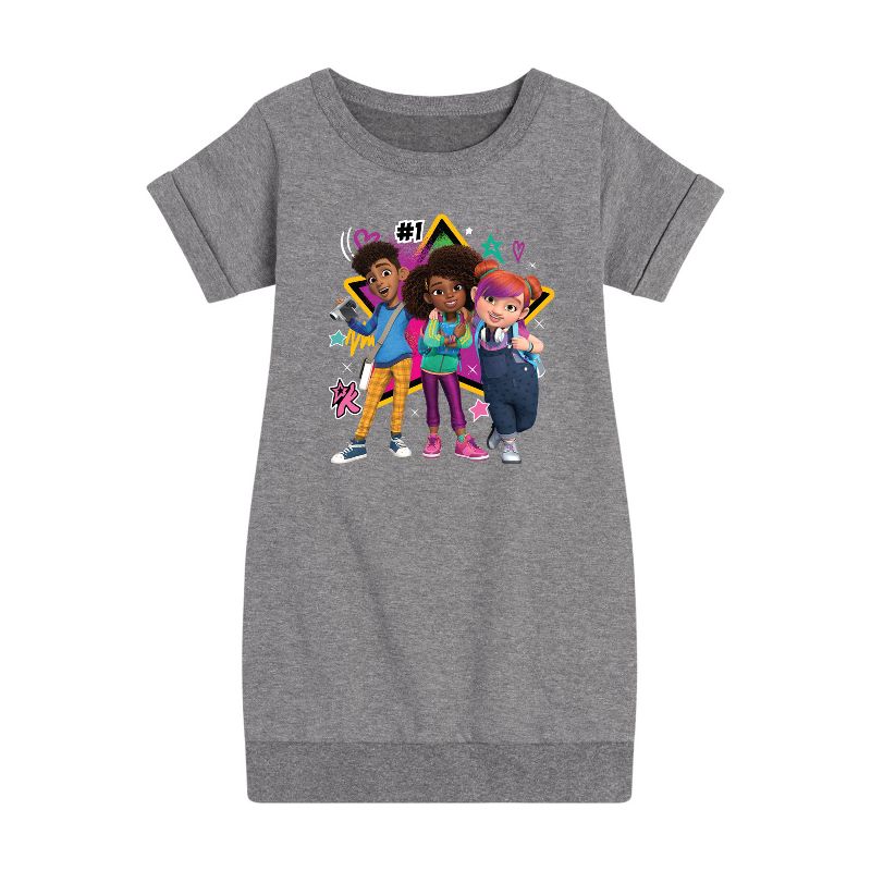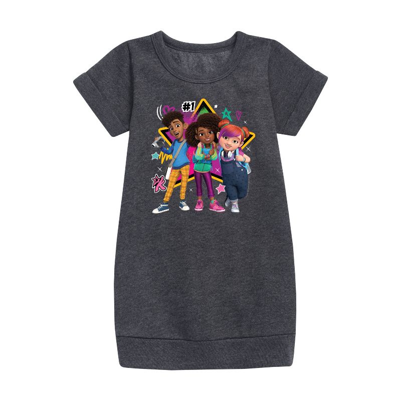 عالم كارما - كلنا نجوم - كارما، وينستون، وأليكس - فستان صوف للفتيات الصغيرات والشابات - انطلقي في رحلة التعبير عن الذات والثقة مع ملابس جرافيكية مستوحاة من عالم كارما. تتميز كل قطعة بتصاميم نابضة بالحياة، ورسائل ملهمة، وشخصيات من المسلسل الشهير، تحتفي بالإبداع والتفرد وقوة الكلمات. مثالية لعشاق كارما وموسيقاها، تضفي هذه المجموعة لمسة من الإيجابية والأناقة على كل إطلالة ولحظة.
