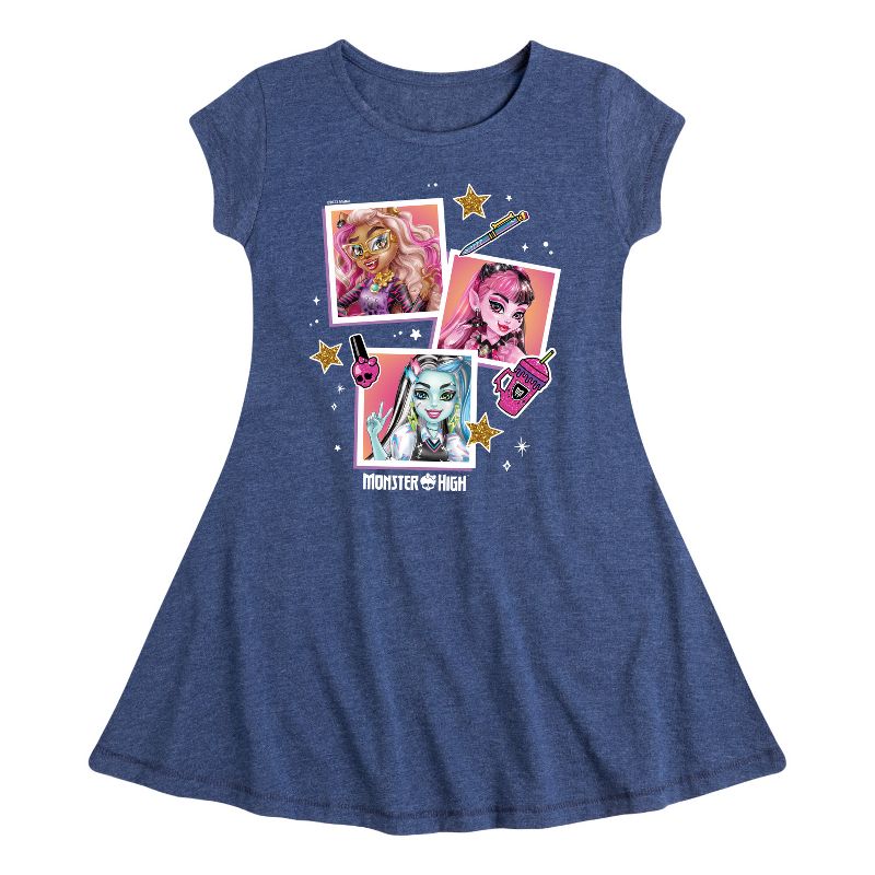 مونستر هاي - صور بولارويد - فستان ضيق وواسع للفتيات الصغيرات والشابات - تلتقي الغرابة بالروعة في أزياء مونستر هاي الجرافيكية التي تضم شخصيات وحشية مثل دراكولاورا وفرانكي شتاين وكلاودين وولف. تحتفي هذه التصاميم الجريئة والعصرية بالتعبير عن الذات والتفرد وأسلوب الوحوش.