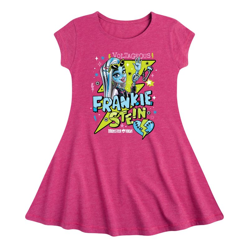 مونستر هاي - فرانكيشتاين فولتاجوس - فستان ضيق وواسع للفتيات الصغيرات والشابات - تلتقي الغرابة بالروعة في أزياء مونستر هاي الجرافيكية التي تضم شخصيات وحشية مثل دراكولاورا وفرانكي شتاين وكلاودين وولف. تحتفي هذه التصاميم الجريئة والعصرية بالتعبير عن الذات والتفرد وأسلوب الوحوش.