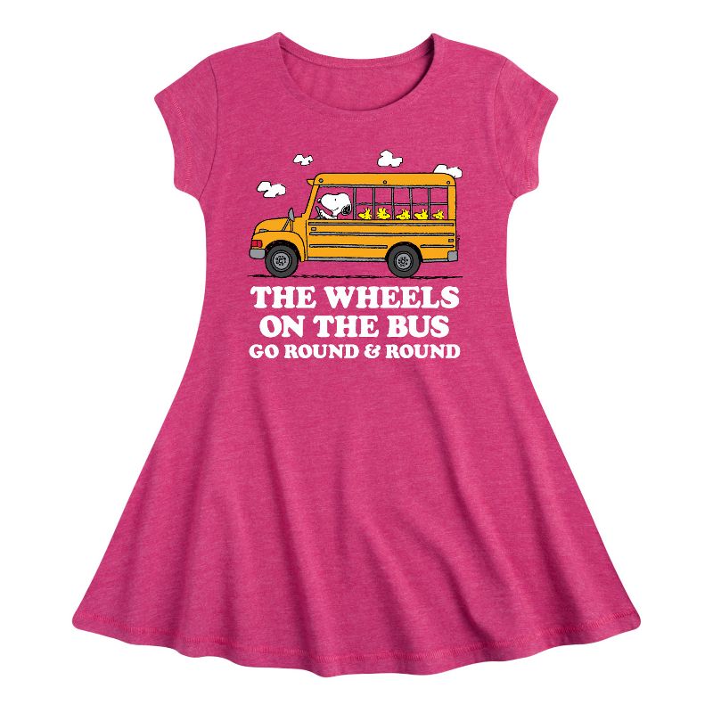بيناتس - عجلات على الحافلة - فستان قصير وواسع للفتيات الصغيرات والشابات - من أشهر القصص المصورة في التاريخ، تأتي ملابس بيناتس المرخصة رسميًا لعشاقها في كل مكان. أظهروا حبكم لتشارلي براون، وسنوبي، وودستوك، ولوسي، ولينوس، وبيغبن، وجميع أفراد العائلة. جميع الحقوق محفوظة لبيناتس.