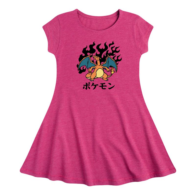 بوكيمون - تشاريزارد فلاش فاير - فستان بناتي ضيق وواسع - احتفلي بجوهر بوكيمون مع ملابس مرخصة رسميًا تتميز بتصاميم فريدة من تصميم هايبرد أباريل. كل قطعة تُجسّد شخصيات محبوبة، وصورًا أيقونية، ولحظات لا تُنسى، مما يُتيح لعشاق بوكيمون طريقة فريدة للتعبير عن شغفهم.