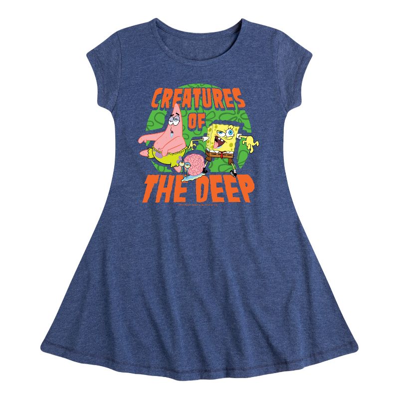 سبونج بوب سكوير بانتس - مخلوقات الأعماق - فستان ضيق وواسع من الأسفل للفتيات الصغيرات والشابات - انغمسي في متعة بيكيني بوتوم مع ملابس سبونج بوب سكوير بانتس الجرافيكية! تتميز هذه المجموعة بتصاميم ملونة لسبونج بوب، وباتريك، وسكويدوارد، وساندي، وغيرهم، وتضفي لمسة من الفكاهة واللحظات التي لا تُنسى على المسلسل. مثالية لمحبي المسلسل من جميع الأعمار، حيث تضفي لمسة شخصية مميزة على أي خزانة ملابس.