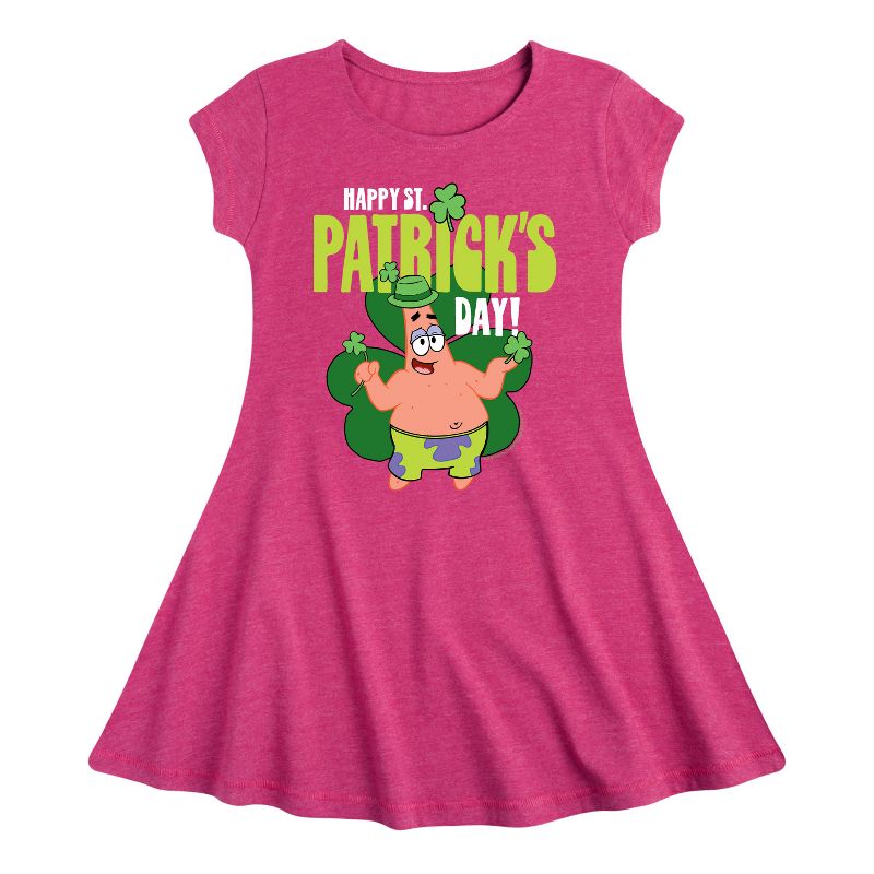 سبونج بوب سكوير بانتس - عيد القديس باتريك سعيد - فستان بناتي بأكمام قصيرة وقصّة واسعة - انغمسي في متعة بيكيني بوت مع ملابس سبونج بوب سكوير بانتس الجرافيكية! تتميز هذه المجموعة بتصاميم ملونة لسبونج بوب، وباتريك، وسكويدوارد، وساندي، وغيرهم، وتضفي لمسةً من الفكاهة واللحظات التي لا تُنسى على المسلسل. مثالية لعشاق المسلسل من جميع الأعمار، حيث تضفي لمسةً شخصيةً مميزةً على أي خزانة ملابس.