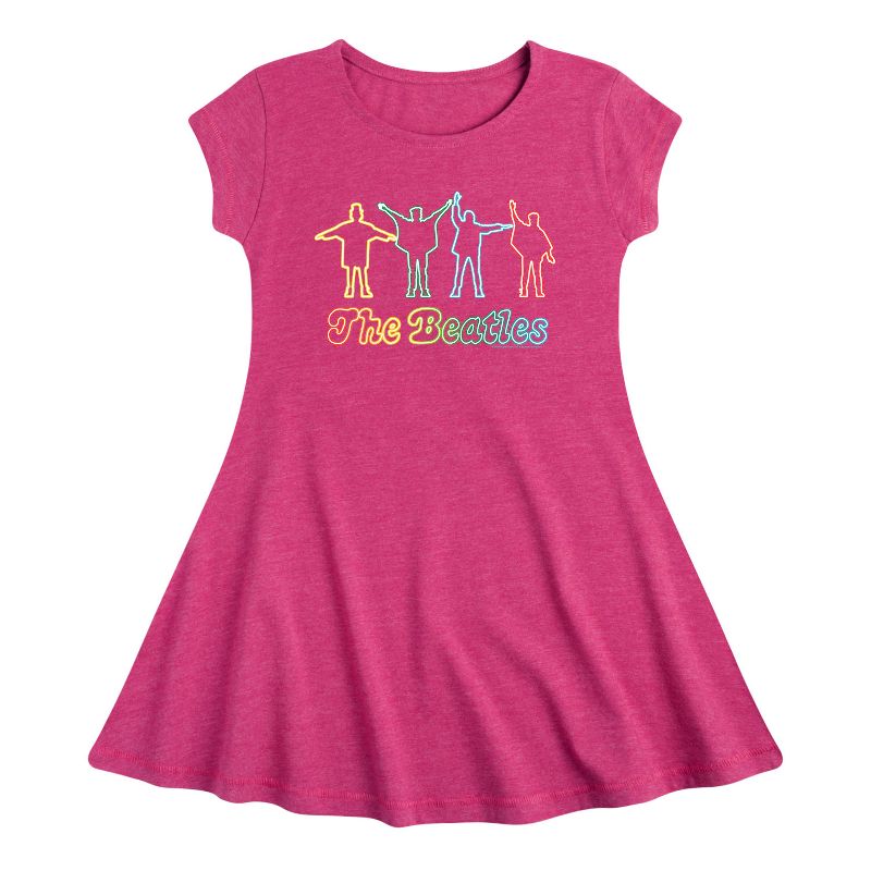 نيون ذا بيتلز - فستان بناتي بأكمام قصيرة وواسعة - تُعتبر فرقة البيتلز، التي ضمت تشكيلتها الموسيقية الأشهر جون لينون وبول مكارتني وجورج هاريسون ورينغو ستار، الفرقة الأكثر تأثيرًا على مر العصور. من ألبوماتهم: Please Please Me (1963)، With the Beatles (1963)، A Hard Day's Night (1964)، Beatles for Sale (1964)، Help! (1965)، Rubber Soul (1965)، Revolver (1966)، Sgt. Pepper's Lonely Hearts Club Band (1967)، Magical Mystery Tour (1967)، The Beatles (1968)، ("الألبوم الأبيض") Yellow Submarine (1969)، Abbey Road (1969)، Let It Be (1970)، Past Masters (1988، تجميع). جميع الحقوق محفوظة لشركة Apple Corps Ltd. 2021. منتج من Beatles (TM)