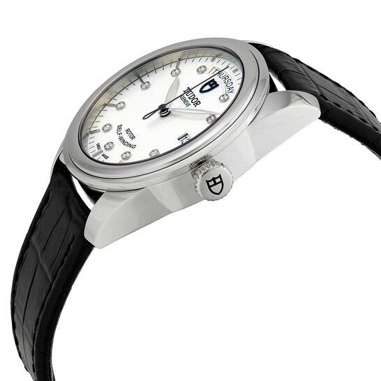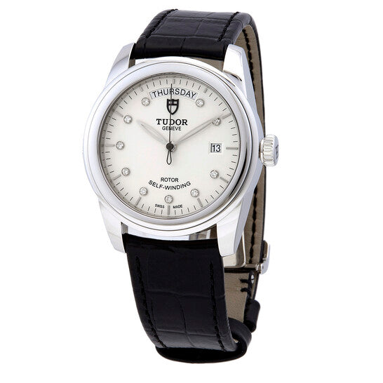 علبة من الفولاذ المقاوم للصدأ مع سوار جلدي أسود. إطار ثابت مزدوج من الفولاذ المقاوم للصدأ. ميناء من الأوبالين بعقارب فضية اللون وعلامات ساعات مرصعة بالألماس. علامات دقائق حول الحافة الخارجية. نوع الميناء: تناظري. عقارب مضيئة. نافذة عرض التاريخ عند موضع الساعة 3. نافذة عرض أيام الأسبوع عند موضع الساعة 12. حركة أوتوماتيكية من عيار تيودور 2834، مبنية على عيار ETA 2834، تحتوي على 25 جوهرة، تنبض بمعدل 28800 ذبذبة في الساعة، ولديها احتياطي طاقة يدوم حوالي 38 ساعة. زجاج من الياقوت المقاوم للخدش. تاج لولبي. غطاء خلفي صلب. شكل دائري. حجم العلبة: 39 مم. مشبك قابل للطي. مقاومة للماء حتى عمق 100 متر / 330 قدمًا. الوظائف: التاريخ، اليوم، الساعة، الدقيقة، الثانية. تصميم ساعة فاخرة. علامة الساعة: صناعة سويسرية. ساعة تيودور غلامور أوتوماتيكية مرصعة بالألماس للرجال M56000-0184.