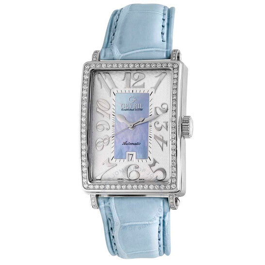 علبة من الفولاذ المقاوم للصدأ فضية اللون مع سوار من جلد العجل الأزرق. إطار ثابت مرصع بكريستال فضي اللون. ميناء أزرق مع عقارب فضية اللون وعلامات ساعات بأرقام عربية. مقياس دقائق حول الحافة الداخلية. نوع الميناء: تناظري. عرض التاريخ عند موضع الساعة السادسة. حركة أوتوماتيكية. كريستال ياقوت مقاوم للخدش ومضاد للانعكاس. تاج ضغط/سحب. غطاء خلفي صلب. شكل العلبة مستطيل، أبعادها: 34 × 44 مم، سمكها: 12 مم. عرض السوار: 23 مم، طوله: 7.5 بوصة. مشبك بإبزيم. مقاومة للماء حتى عمق 50 مترًا / 165 قدمًا. الوظائف: التاريخ، الساعة، الدقائق، الثواني. تصميم كاجوال. علامة الساعة: صناعة سويسرية. ساعة جيفريل غلامور أوتوماتيكية نسائية 6207NL.