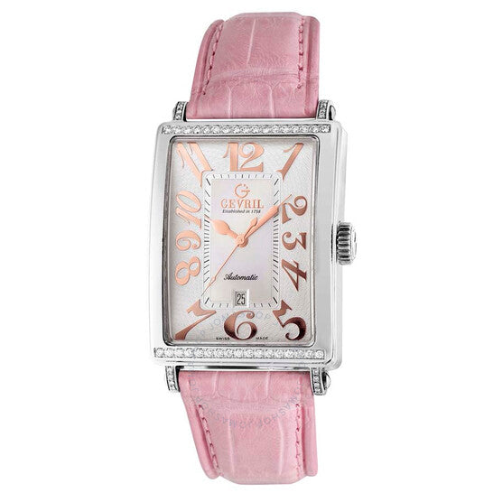 علبة من الفولاذ المقاوم للصدأ فضية اللون مع سوار من جلد العجل الأحمر. إطار ثابت من الفولاذ المقاوم للصدأ فضي اللون. ميناء وردي بعقارب ذهبية اللون وعلامات ساعات بأرقام عربية. مقياس دقائق حول الحافة الداخلية. نوع الميناء: تناظري. عرض التاريخ عند موضع الساعة السادسة. آلية حركة أوتوماتيكية. زجاج ياقوت مقاوم للخدش ومضاد للانعكاس. تاج ضغط/سحب. غطاء خلفي صلب. شكل العلبة مستطيل، أبعادها: 34 × 44 مم، سمكها: 12 مم. عرض السوار: 23 مم، طوله: 7.5 بوصة. مشبك بإبزيم. مقاومة للماء حتى عمق 50 مترًا / 165 قدمًا. الوظائف: التاريخ، الساعة، الدقائق، الثواني. تصميم كاجوال. علامة الساعة: صناعة سويسرية. ساعة جيفريل غلامور أوتوماتيكية نسائية بمينا وردي 6208RT.