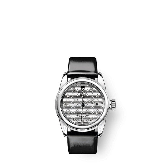 علبة من الفولاذ المقاوم للصدأ فضية اللون مع سوار جلدي أسود. إطار ثابت من الفولاذ المقاوم للصدأ فضي اللون. ميناء فضي من قماش الجاكار مع عقارب فضية اللون وعلامات ساعات من الألماس. نوع الميناء: تناظري. عرض التاريخ عند موضع الساعة الثالثة. حركة أوتوماتيكية من طراز Tudor Calibre T201، مبنية على ETA 2671، تحتوي على 25 جوهرة، تنبض بمعدل 28800 ذبذبة في الساعة، ولديها احتياطي طاقة لمدة 38 ساعة تقريبًا. زجاج من الياقوت المقاوم للخدش. تاج لولبي. غطاء خلفي صلب. شكل دائري، مقاس العلبة: 26 مم. مشبك قابل للطي مع مفتاح أمان. مقاومة للماء حتى عمق 100 متر / 330 قدمًا. الوظائف: التاريخ، الساعة، الدقيقة، الثانية. سلسلة Glamour Date. طراز ساعة فاخرة. علامة الساعة: صناعة سويسرية. تنوعات المنتج: M51000-0021. ساعة Tudor Glamour Date أوتوماتيكية نسائية مرصعة بالألماس 51000-0021.