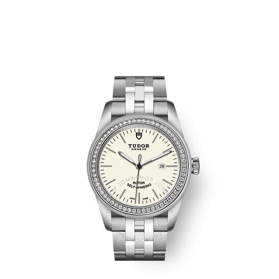 علبة وسوار من الفولاذ المقاوم للصدأ فضي اللون. إطار ثابت فضي اللون مرصع بالألماس. ميناء أوبالين بعقارب فضية اللون وعلامات ساعات مؤشرة. علامات دقائق حول الحافة الخارجية. نوع الميناء: تناظري. عرض التاريخ عند موضع الساعة 3. حركة أوتوماتيكية من طراز تيودور كاليبر T201، مبنية على ETA 2671، تحتوي على 25 جوهرة، تنبض بمعدل 28800 ذبذبة في الساعة، ولديها احتياطي طاقة لمدة 38 ساعة تقريبًا. زجاج من الياقوت المقاوم للخدش. تاج لولبي. غطاء خلفي صلب. شكل العلبة دائري، مقاسها: 31 مم. مشبك قابل للطي مع مفتاح أمان. مقاومة للماء حتى عمق 100 متر / 330 قدمًا. الوظائف: التاريخ، الساعة، الدقيقة، الثانية. معلومات إضافية: إطار فولاذي مزدوج مرصع بـ 60 ماسة، بلمسة نهائية مصقولة. سلسلة Glamour Date. طراز ساعة فاخرة. علامة الساعة: صناعة سويسرية. تنوعات المنتج: M53020-0073. ساعة تيودور جلامور ديت أوتوماتيكية مرصعة بالألماس للسيدات 53020-0073.