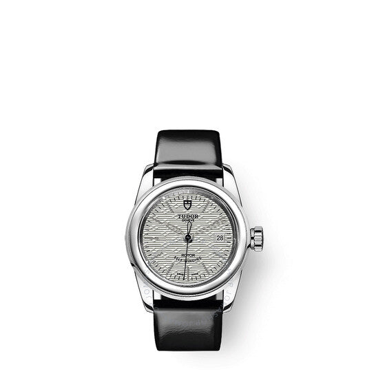 علبة من الفولاذ المقاوم للصدأ فضية اللون مع سوار جلدي أسود. إطار ثابت من الفولاذ المقاوم للصدأ فضي اللون. ميناء فضي من قماش الجاكار مع عقارب وعلامات ساعات فضية اللون. علامات دقائق حول الحافة الخارجية. نوع الميناء: تناظري. عرض التاريخ عند موضع الساعة 3. حركة أوتوماتيكية من طراز Tudor Calibre T201، مبنية على ETA 2671، تحتوي على 25 جوهرة، تنبض بمعدل 28800 ذبذبة في الساعة، ولديها احتياطي طاقة لمدة 38 ساعة تقريبًا. زجاج من الياقوت المقاوم للخدش. تاج لولبي. غطاء خلفي صلب. شكل العلبة دائري، مقاسها 26 مم. مشبك قابل للطي مع مفتاح أمان. مقاومة للماء حتى عمق 100 متر / 330 قدمًا. الوظائف: التاريخ، الساعة، الدقيقة، الثانية. سلسلة Glamour Date. طراز ساعة فاخرة. علامة الساعة: صناعة سويسرية. تنوعات المنتج: M51000-0022. ساعة Tudor Glamour Date أوتوماتيكية نسائية 51000-0022.