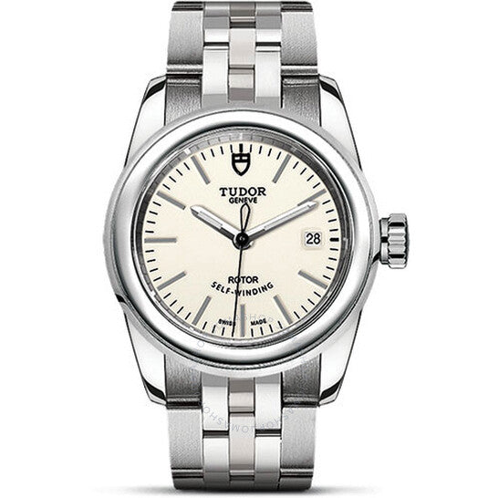 علبة وسوار من الفولاذ المقاوم للصدأ فضي اللون. إطار ثابت من الفولاذ المقاوم للصدأ فضي اللون. ميناء من الأوبالين مع عقارب فضية اللون وعلامات ساعات. علامات دقائق حول الحافة الخارجية. نوع الميناء: تناظري. عقارب مضيئة. عرض التاريخ عند موضع الساعة 3. حركة أوتوماتيكية من طراز Tudor Calibre T201، مبنية على ETA 2671، تحتوي على 25 جوهرة، تنبض بمعدل 28800 ذبذبة في الساعة، ولديها احتياطي طاقة لمدة 38 ساعة تقريبًا. زجاج من الياقوت المقاوم للخدش. تاج لولبي. غطاء خلفي صلب. شكل العلبة دائري، مقاسها: 26 مم. مشبك قابل للطي مع مفتاح أمان. مقاومة للماء حتى عمق 100 متر / 330 قدمًا. الوظائف: التاريخ، الساعة، الدقيقة، الثانية. سلسلة Glamour Date. طراز ساعة رسمية. علامة الساعة: صناعة سويسرية. تنوعات المنتج: 51000-0027. ساعة Tudor Glamour Date أوتوماتيكية نسائية M51000-0027.