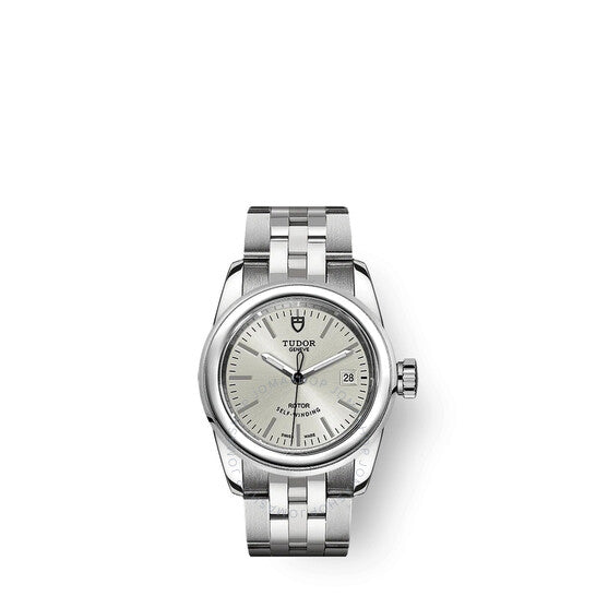 علبة وسوار من الفولاذ المقاوم للصدأ فضي اللون. إطار ثابت من الفولاذ المقاوم للصدأ فضي اللون. ميناء فضي اللون مع عقارب وعلامات ساعات فضية اللون. علامات دقائق حول الحافة الخارجية. نوع الميناء: تناظري. عقارب مضيئة. عرض التاريخ عند موضع الساعة 3. حركة أوتوماتيكية من طراز تيودور كاليبر T201، مبنية على ETA 2671، تحتوي على 25 جوهرة، تنبض بمعدل 28800 ذبذبة في الساعة، ولديها احتياطي طاقة يدوم حوالي 38 ساعة. زجاج من الياقوت المقاوم للخدش. تاج لولبي. غطاء خلفي صلب. شكل العلبة دائري، مقاسها: 26 مم. مشبك قابل للطي مع مفتاح أمان. مقاومة للماء حتى عمق 100 متر / 330 قدمًا. الوظائف: التاريخ، الساعة، الدقيقة، الثانية. سلسلة Glamour Date. طراز ساعة فاخرة. علامة الساعة: صناعة سويسرية. تنوعات المنتج: M51000-0003. ساعة تيودور جلامور ديت أوتوماتيكية للنساء بمينا فضي 51000-0003.