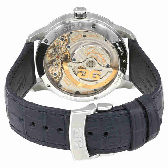 علبة من الفولاذ المقاوم للصدأ مع سوار من جلد التمساح الأزرق. إطار ثابت. ميناء أزرق مع عقارب من الذهب الأبيض وعلامات ساعات. نوع الميناء: تناظري. عرض التاريخ عند موضع الساعة الرابعة. ثوانيتان - 60 ثانية وطور القمر. حركة أوتوماتيكية من غلاشوت كاليبر 90-02. زجاج ياقوت مقاوم للخدش. تاج قابل للسحب/الدفع. حجم العلبة: 40 مم. سُمكها: 12.7 مم. شكلها دائري. قابلة للطي مع مشبك بزر ضغط. مقاومة للماء حتى عمق 50 مترًا / 165 قدمًا. الوظائف: التاريخ، الساعات، الدقائق، الثواني، طور القمر. تصميم ساعة فاخرة. ملصق الساعة: صنع في ألمانيا. ساعة غلاشوت بانوماتيك لونر أوتوماتيكية للرجال بمينا أزرق 90-02-46-32-35.