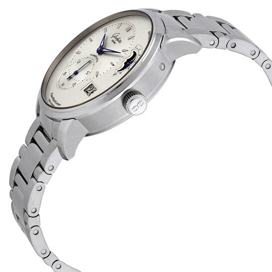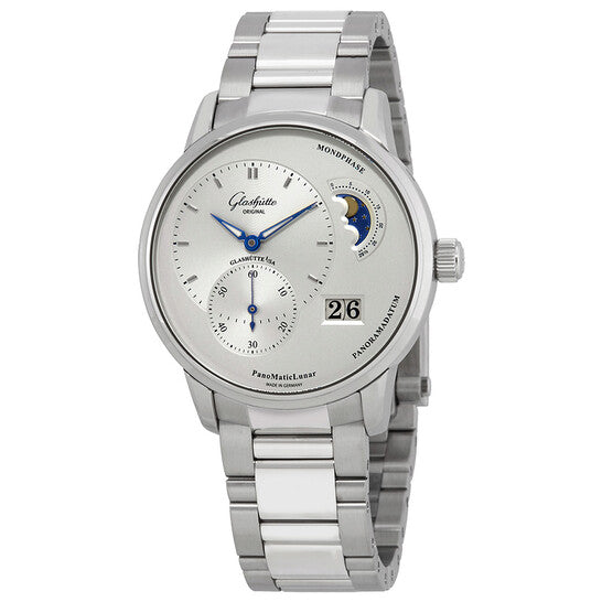 علبة من الفولاذ المقاوم للصدأ مع سوار من الفولاذ المقاوم للصدأ. إطار ثابت. ميناء فضي بعقارب زرقاء وعلامات ساعات. نوع الميناء: تناظري. عرض التاريخ عند موضع الساعة الرابعة. ثوانيتان - 60 ثانية وطور القمر. حركة أوتوماتيكية من عيار 90-02. زجاج ياقوتي مقاوم للخدش. حجم العلبة: 40 مم. سُمكها: 12.7 مم. شكلها دائري. مقاومة للماء حتى عمق 50 مترًا / 165 قدمًا. الوظائف: التاريخ، الساعة، الدقيقة، الثانية، طور القمر. تصميم ساعة فاخر. علامة الساعة: صنع في ألمانيا. ساعة غلاشوت بانوماتيك لونر أوتوماتيكية للرجال بمينا فضي 90-02-42-32-24.