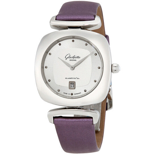 علبة من الفولاذ المقاوم للصدأ مع سوار ساتان أزرق داكن (مغطى بجلد التمساح). إطار ثابت من الفولاذ المقاوم للصدأ. ميناء فضي مجلفن بعقارب فضية اللون وعلامات ساعات من الألماس. نوع الميناء: تناظري. عرض التاريخ عند موضع الساعة السادسة. حركة كوارتز من غلاشوت عيار 03-01. زجاج ياقوت مقاوم للخدش. تاج قابل للسحب/الدفع. غطاء خلفي صلب. شكل وسادة. أبعاد العلبة: 31 مم × 31 مم. سمك العلبة: 7.5 مم. عرض السوار: 16 مم. طول السوار: 7 بوصات. مشبك تانغ. مقاومة للماء حتى عمق 50 مترًا / 165 قدمًا. الوظائف: التاريخ، الساعة، الدقائق. معلومات إضافية: 12 ماسة (حوالي 0.06 قيراط، tw vvs). تصميم ساعة فاخر. ملصق الساعة: صنع في ألمانيا. ساعة غلاشوت بافونينا نسائية بمينا فضي مجلفن 1-03-01-15-02-34.