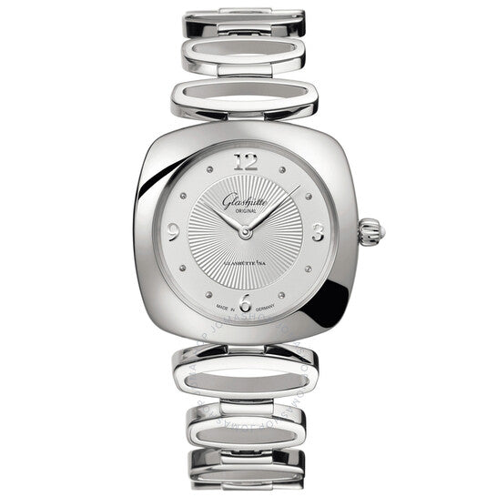 علبة من الفولاذ المقاوم للصدأ مع سوار من الفولاذ المقاوم للصدأ. إطار ثابت. ميناء فضي بعقارب مطلية بالروديوم وعلامات ساعات مرصعة بالألماس العربي. نوع الميناء: تناظري. حركة كوارتز من غلاشوت كاليبر 03-02. زجاج ياقوت مقاوم للخدش. تاج قابل للسحب/الدفع. حجم العلبة: 31 مم × 31 مم. سُمك العلبة: 7.5 مم. شكل العلبة وسادة. مقاومة للماء حتى عمق 50 مترًا / 165 قدمًا. الوظائف: الساعات، الدقائق. تصميم ساعة فاخرة. علامة الساعة: صنع في ألمانيا. ساعة غلاشوت بافونينا نسائية 03-02-10-02-14.