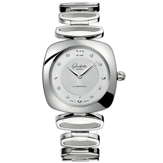 علبة من الفولاذ المقاوم للصدأ مع سوار من الفولاذ المقاوم للصدأ. إطار ثابت. ميناء فضي بعقارب مطلية بالروديوم وعلامات ساعات عربية مرصعة بالألماس. نوع الميناء: تناظري. حركة كوارتز من غلاشوت كاليبر 03-02. زجاج ياقوت مقاوم للخدش. تاج قابل للسحب/الدفع. حجم العلبة: 31 مم × 31 مم. سُمك العلبة: 7.5 مم. شكل العلبة وسادة. قابلة للطي مع مشبك بزر ضغط. مقاومة للماء حتى عمق 50 مترًا / 165 قدمًا. الوظائف: الساعات، الدقائق. تصميم ساعة فاخرة. علامة الساعة: صنع في ألمانيا. ساعة غلاشوت بافونينا النسائية 03-02-12-12-14.