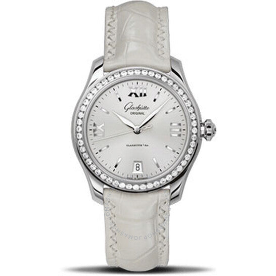 علبة من الفولاذ المقاوم للصدأ مع حزام من جلد التمساح بيج. إطار ثابت. ميناء فضي اللون بعقارب فضية اللون ومؤشرات ساعات بأرقام رومانية. نوع الميناء: تناظري. عرض التاريخ عند موضع الساعة السادسة. حركة أوتوماتيكية من عيار 39-22 مع احتياطي طاقة يدوم حوالي 40 ساعة. زجاج من الياقوت المقاوم للخدش. غطاء خلفي شفاف هيكلي. حجم العلبة: 36 مم. سمكها: 10.2 مم. شكلها دائري. قابلة للطي مع مشبك بزر ضغط. مقاومة للماء حتى عمق 50 مترًا / 165 قدمًا. الوظائف: التاريخ، الساعة، الدقائق، الثواني. معلومات إضافية: إطار مرصع بـ 52 ماسة (1.09 قيراط). تصميم ساعة فاخر. علامة الساعة: صنع في ألمانيا. ساعة غلاشوت سيريناد نسائية بمينا فضي 39-22-02-22-04.