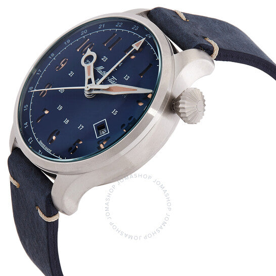 علبة من الفولاذ المقاوم للصدأ فضية اللون مع سوار جلدي أزرق. إطار ثابت من الفولاذ المقاوم للصدأ فضي اللون. ميناء أزرق مع عقارب فضية اللون وعلامات ساعات رقمية عربية. نوع الميناء: تناظري. عرض التاريخ عند موضع الساعة الرابعة. حركة أوتوماتيكية ETA Caliber 293. زجاج ياقوتي مقاوم للخدش. علبة دائرية الشكل، مقاسها 44 مم. مقاومة للماء حتى عمق 50 مترًا / 165 قدمًا. الوظائف: توقيت غرينتش، المنطقة الزمنية الثانية، التاريخ، الساعات، الدقائق، الثواني. سلسلة GMT 293. علامة الساعة: صناعة سويسرية. ساعة ماثي تيسوت GMT 293 أوتوماتيكية للرجال بمينا أزرق، طراز H123AN.