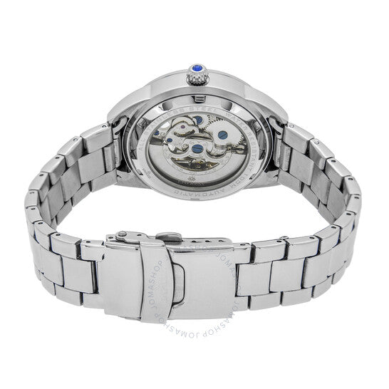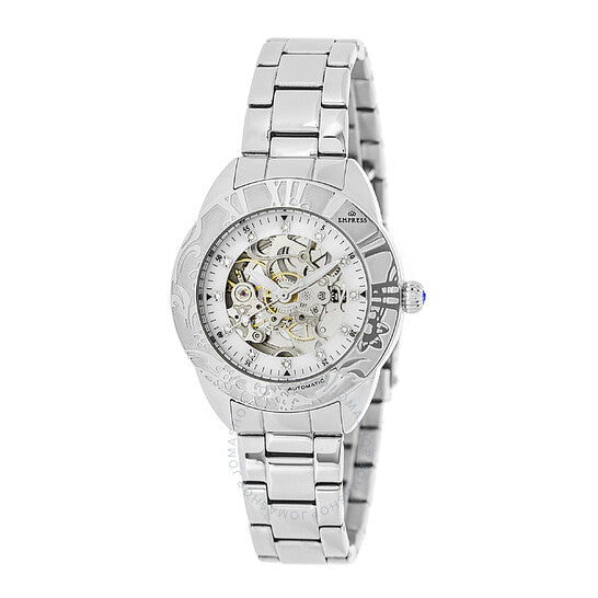 علبة من الفولاذ المقاوم للصدأ مع سوار من الفولاذ المقاوم للصدأ. إطار ثابت من الفولاذ المقاوم للصدأ. ميناء أبيض (هيكلي مركزي) بعقارب فضية مضيئة وعلامات ساعات. علامات دقائق بأرقام عربية (بفاصل 5 دقائق). علامات دقائق حول الحافة الخارجية. نوع الميناء: تناظري. عقارب مضيئة. حركة أوتوماتيكية. زجاج معدني مقاوم للخدش. غطاء خلفي شفاف. شكل دائري. حجم العلبة: 38 مم. سمكها: 13 مم. عرض السوار: 18 مم. مشبك قابل للطي بزر ضغط. مقاومة للماء حتى عمق 100 متر / 330 قدمًا. الوظائف: الساعات، الدقائق، الثواني. سلسلة جوديفا. تصميم ساعة كاجوال. إصدارات متنوعة: EMPEM1101. ساعة إمبريس جوديفا أوتوماتيكية نسائية بمينا أبيض EMPEM1101.