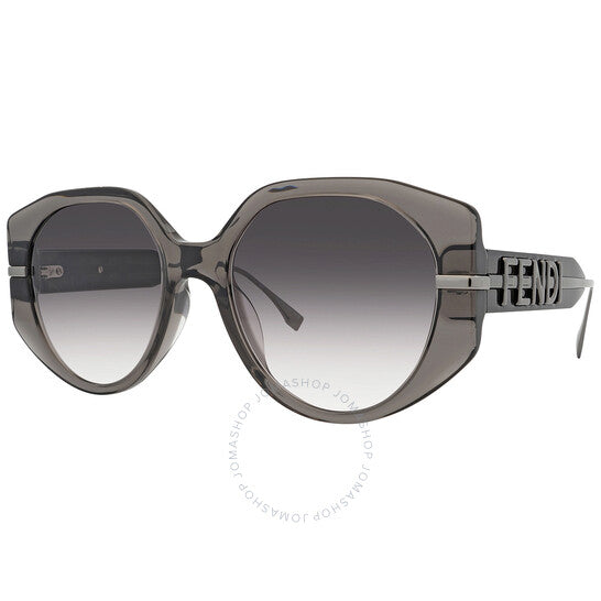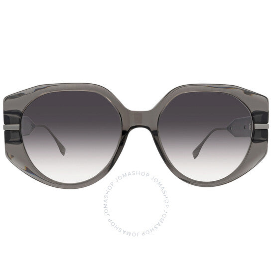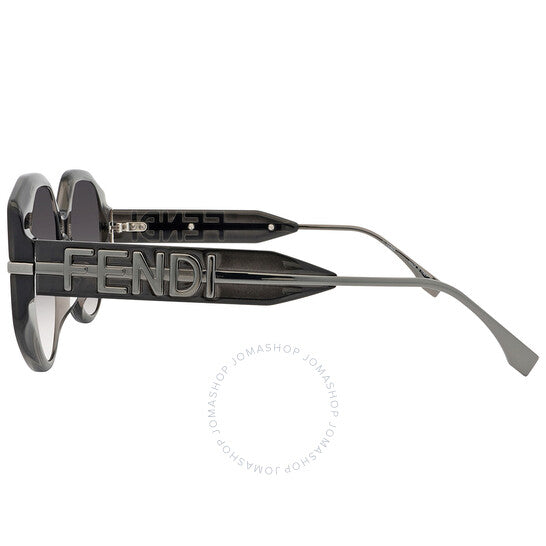 نظارات شمسية فندي. رقم السلسلة: FE40083U. رمز اللون: 20B. الشكل: فراشة. عرض العدسة: 54 مم. جسر العدسة: 19 مم. طول الذراع: 140 مم. حماية 100% من الأشعة فوق البنفسجية. مادة الإطار: أسيتات؛ معدن. لون الإطار: رمادي. نوع العدسات: دخاني متدرج. نمط الحافة: حافة كاملة. رمز UPC/EAN: 192337124068. نظارات شمسية فندي نسائية متدرجة من الدخان بتصميم فراشة، FE40083U 20B، 54.