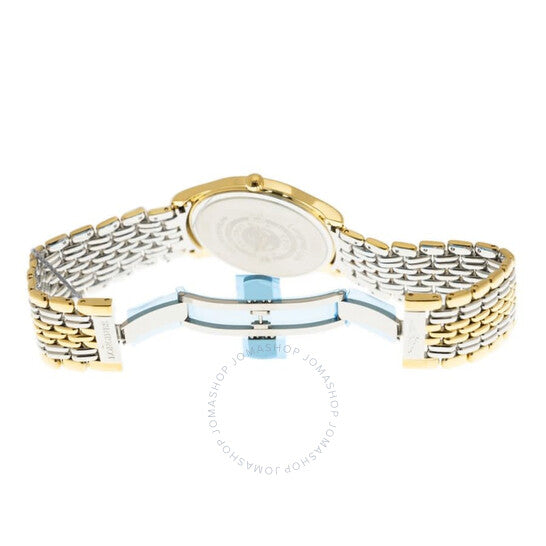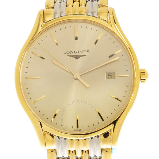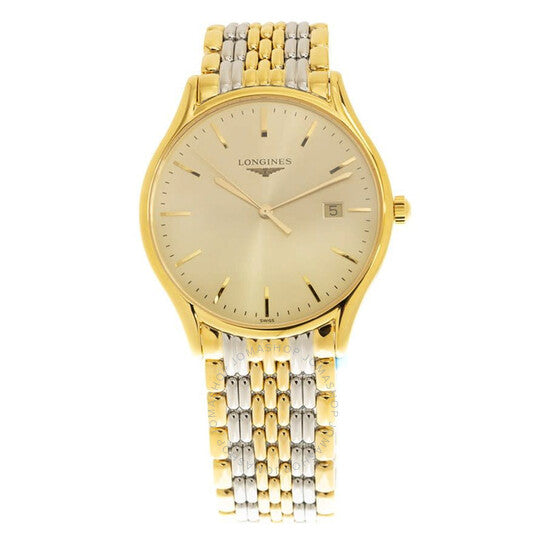علبة من الفولاذ المقاوم للصدأ والذهب الأصفر عيار 18 قيراطًا، مع سوار ثنائي اللون (فضي وذهبي أصفر). إطار ثابت من الفولاذ المقاوم للصدأ ذهبي اللون. ميناء ذهبي مع عقارب ذهبية اللون وعلامات ساعات. علامات دقائق حول الحافة الخارجية. نوع الميناء: تناظري. عرض التاريخ عند موضع الساعة 3. حركة كوارتز لونجين كاليبر L157. زجاج ياقوت مقاوم للخدش. تاج لولبي. غطاء خلفي صلب. شكل دائري، مقاس العلبة: 38.5 مم. عرض السوار: 20 مم. مشبك قابل للطي. مقاومة للماء حتى عمق 30 مترًا / 100 قدم. الوظائف: التاريخ، الساعة، الدقيقة، الثانية، مؤشر عمر البطارية. سلسلة جراند كلاسيك. طراز ساعة رسمية. علامة الساعة: صناعة سويسرية. ساعة لونجين جراند كلاسيك كوارتز للرجال L4.859.2.32.7.