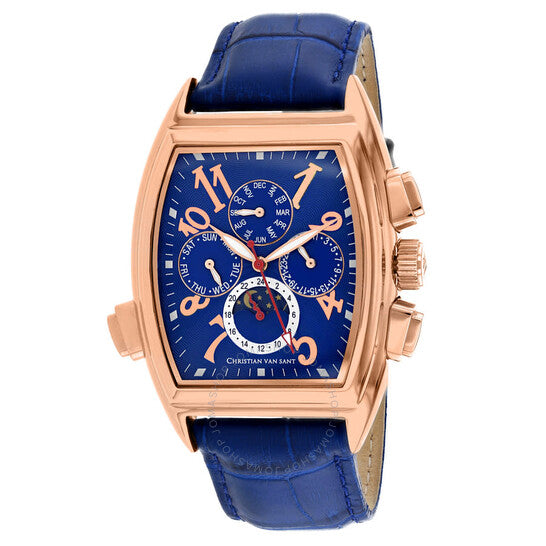 علبة من الفولاذ المقاوم للصدأ بلون الذهب الوردي مع سوار جلدي أزرق. إطار ثابت من الفولاذ المقاوم للصدأ بلون الذهب الوردي. ميناء أزرق مع عقارب بلون الذهب الوردي وعلامات ساعات بأرقام عربية. علامات دقائق حول الحافة الخارجية. نوع الميناء: تناظري. حركة أوتوماتيكية. زجاج معدني مقاوم للخدش. هيكل مستطيل الشكل، مقاس العلبة: 45 مم، سمكها: 14 مم. عرض السوار: 20 مم، طوله: 7.5 بوصة. مشبك بإبزيم. مقاومة للماء حتى عمق 50 مترًا / 165 قدمًا. الوظائف: الشهر، التاريخ، اليوم، الساعة، الدقيقة، الثانية. سلسلة جراندور. ساعة أنيقة. ساعة كريستيان فان سانت جراندور أوتوماتيكية نسائية بمينا أزرق CV2140.