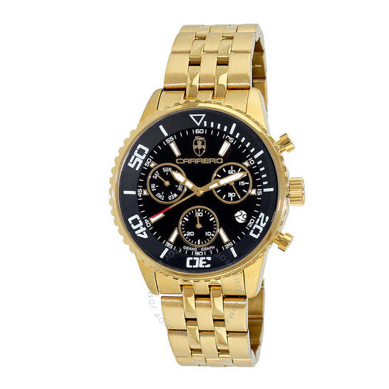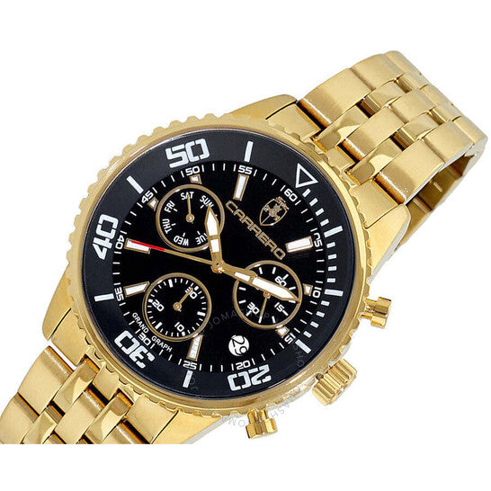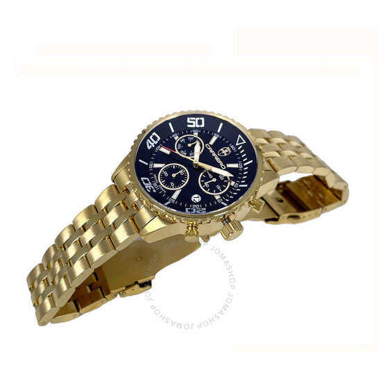 ساعة تورينو كاريرو كرونوغراف سويسرية فاخرة للرجال (روندا Z-60)، ميناء وإطار أسودان مع تاريخ، لون ذهبي. هيكل وسوار من الفولاذ المقاوم للصدأ بلون ذهبي أصفر. إطار ثابت من الفولاذ المقاوم للصدأ بلون أسود. ميناء أسود مع عقارب بلون ذهبي أصفر وأرقام رومانية وعلامات ساعات. علامات دقائق حول الحافة الخارجية. نوع الميناء: تناظري. عقارب وعلامات مضيئة. اليوم / التاريخ. كرونوغراف - أقراص فرعية تعرض: 60 ثانية. حركة كوارتز روندا كاليبر Z60. زجاج معدني مقاوم للخدش. تاج لولبي. غطاء خلفي صلب. شكل دائري، حجم الهيكل: 44 مم، سمك الهيكل: 13 مم. عرض السوار: 22 مم، طول السوار: 8.5 بوصة. مشبك قابل للطي بزر ضغط. مقاومة للماء حتى عمق 100 متر / 330 قدم. الوظائف: كرونوغراف، تاريخ، يوم، ساعة، دقيقة، ثانية صغيرة. معلومات إضافية: 30 ثانية. سلسلة جراند جراب. تصميم ساعة كاجوال. علامة الساعة: صناعة سويسرية، حركة كرونوغراف. ساعة تورينو كاريرو جراندغراب كرونوغراف كوارتز للرجال، مينا سوداء، طراز C1G4343BKJ.
