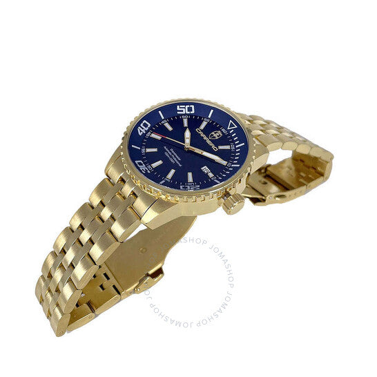 ساعة تورينو كاريرو جراند ماستر أوتوماتيكية للرجال NH35 - 21 جوهرة، ميناء أزرق بخاصية عرض التاريخ، لون ذهبي. هيكل وسوار من الفولاذ المقاوم للصدأ بلون ذهبي أصفر. إطار ثابت من الفولاذ المقاوم للصدأ بلون أزرق. ميناء أزرق بعقارب بلون ذهبي أصفر وأرقام عربية وعلامات ساعات. علامات دقائق حول الحافة الخارجية. نوع الميناء: تناظري. عقارب وعلامات مضيئة. عرض التاريخ عند موضع الساعة 3. حركة أوتوماتيكية من عيار TMI NH35، تحتوي على 24 جوهرة، تنبض بمعدل 21600 ذبذبة في الساعة، ولديها احتياطي طاقة لمدة 41 ساعة تقريبًا. زجاج معدني مقاوم للخدش. تاج لولبي. غطاء خلفي صلب. هيكل دائري الشكل، مقاس الهيكل: 44 مم، سمك الهيكل: 13 مم. عرض السوار: 22 مم، طول السوار: 8.5 بوصة. مشبك قابل للطي بزر ضغط. مقاومة للماء حتى عمق 100 متر / 330 قدمًا. الوظائف: التاريخ، الساعة، الدقائق، الثواني. سلسلة جراند ماستر. ساعة كاجوال أنيقة. ماركة الساعة: Japan Movt. ساعة تورينو كاريرو جراند ماستر أوتوماتيكية للرجال بمينا أزرق C1G4345BUJ.