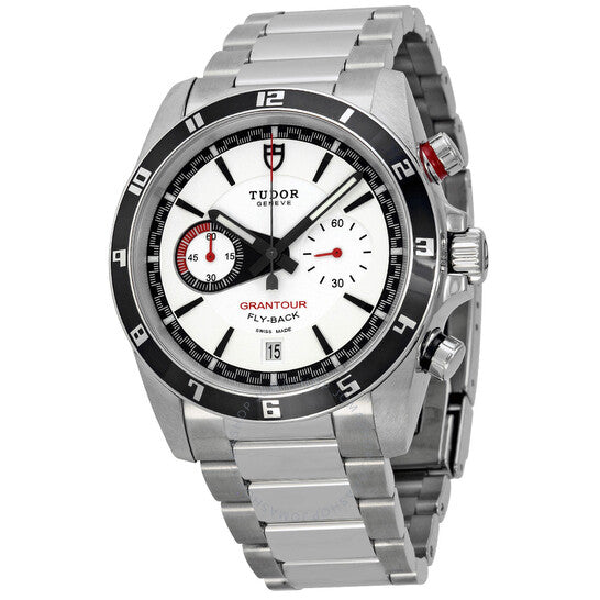 علبة من الفولاذ المقاوم للصدأ مع سوار فضي اللون. إطار ثابت من الفولاذ المقاوم للصدأ بأرقام عربية وحلقة علوية مطلية باللون الأسود. ميناء أبيض بعقارب مضيئة وعلامات ساعات. علامات دقائق حول الحافة الخارجية. نوع الميناء: تناظري. عقارب وعلامات مضيئة. عرض التاريخ عند موضع الساعة السادسة. كرونوغراف - ميناءان فرعيان يعرضان: ٦٠ ثانية و٦٠ دقيقة. حركة أوتوماتيكية من طراز تيودور كاليبر ٢٨٩٢ كرونوغراف، مبنية على ETA ٢٨٩٢، تحتوي على ٢١ جوهرة، تنبض بتردد ٢٨٨٠٠ ذبذبة في الساعة، ولديها احتياطي طاقة لمدة ٤٢ ساعة تقريبًا. زجاج من الياقوت المقاوم للخدش. تاج لولبي. غطاء خلفي صلب. شكل دائري، حجم العلبة: ٤٢ مم. مشبك قابل للطي. مقاومة للماء حتى عمق ١٥٠ مترًا / ٥٠٠ قدم. الوظائف: كرونوغراف، فلاي باك، تاريخ، ساعة، دقيقة، ثانية. سلسلة جرانتور كرونو فلاي-باك. تصميم ساعة فاخر. علامة الساعة: صناعة سويسرية. إصدارات متنوعة: 20550N-95730-أبيض. ساعة تيودور جرانتور فلاي-باك للرجال، 20550N-WSS.