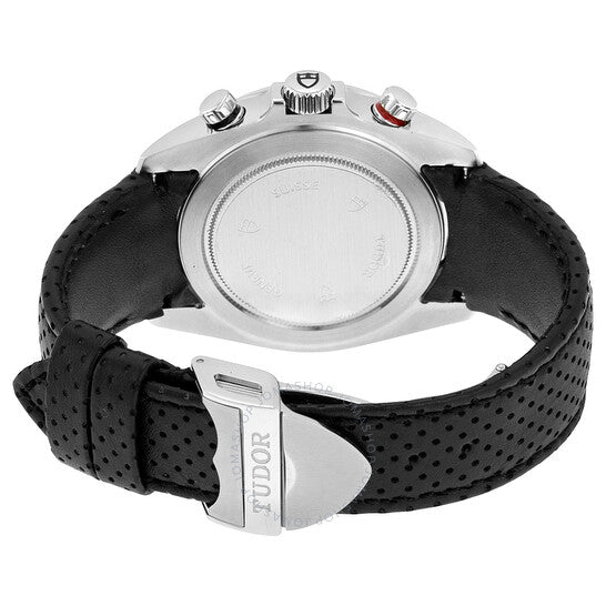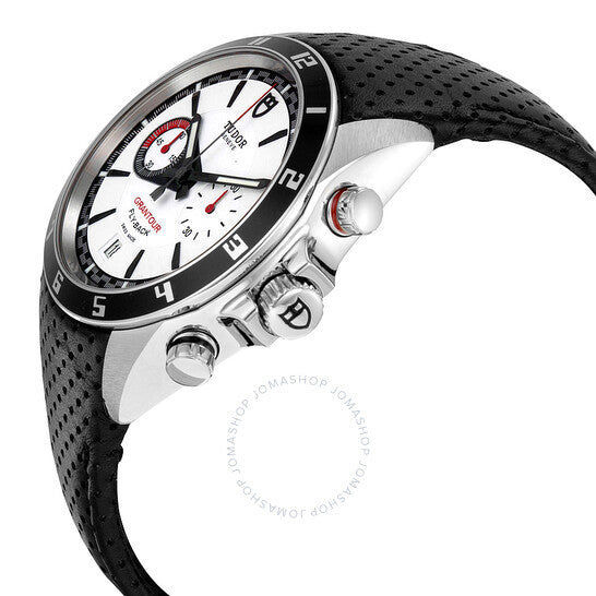 علبة فضية اللون من الفولاذ المقاوم للصدأ مع سوار جلدي أسود مثقوب بدقة. إطار ثابت من الفولاذ المقاوم للصدأ بحلقة علوية سوداء. ميناء أبيض بعقارب مضيئة وعلامات ساعات. علامات دقائق حول الحافة الخارجية. نوع الميناء: تناظري. عقارب وعلامات مضيئة. عرض التاريخ عند موضع الساعة السادسة. كرونوغراف - ميناءان فرعيان يعرضان: 60 ثانية و60 دقيقة. حركة أوتوماتيكية من طراز تيودور كاليبر 2892 كرونوغراف، مبنية على ETA 2892، تحتوي على 21 جوهرة، تنبض بمعدل 28800 ذبذبة في الساعة، ولديها احتياطي طاقة لمدة 42 ساعة تقريبًا. زجاج من الياقوت المقاوم للخدش. تاج لولبي. غطاء خلفي صلب. شكل دائري، حجم العلبة: 42 مم. مشبك قابل للطي. مقاومة للماء حتى عمق 150 مترًا / 500 قدم. الوظائف: كرونوغراف فلاي باك، تاريخ، ساعة، دقيقة، ثانية. سلسلة جرانتور. تصميم ساعة فاخرة. ملصق الساعة: صناعة سويسرية. إصدارات متنوعة: 20550N-microperfleather-white. ساعة تيودور جرانتور للرجال، مينا بيضاء، جلد أسود، 20550N-WMCPL.