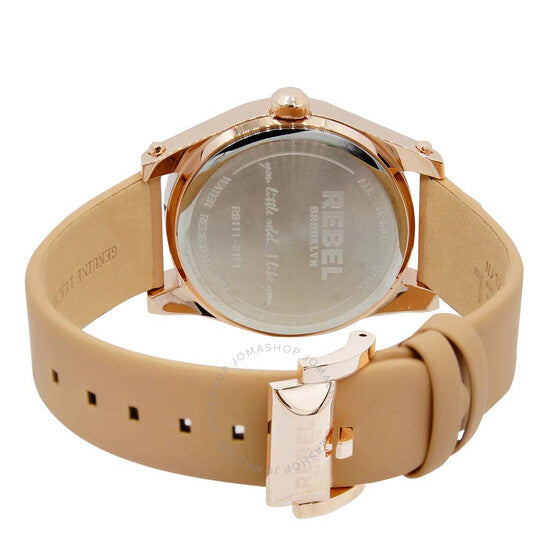 علبة من الفولاذ المقاوم للصدأ بلون الذهب الوردي مع حزام جلدي بني فاتح. إطار ثابت بلون الذهب الوردي مرصع بالكريستال. ميناء بني فاتح (بنمط منشار كهربائي) بعقارب بلون الذهب الوردي وأرقام عربية متناوبة وعلامات ساعات. نوع الميناء: تناظري. حركة كوارتز. معدن مقاوم للخدش مع كريستال مطلي بالياقوت. تاج قابل للسحب/الدفع. غطاء خلفي صلب. شكل دائري. حجم العلبة: 40 مم. سمكها: 12 مم. عرض السوار: 20 مم. طول السوار: 7.5 بوصة. مشبك تانغ. مقاومة للماء حتى عمق 50 مترًا / 165 قدمًا. الوظائف: الساعات، الدقائق، الثواني. سلسلة غريفزند. تصميم كاجوال. ساعة ريبل غريفزند النسائية RB111-8151.