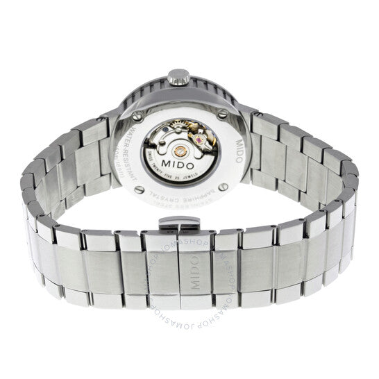 علبة من الفولاذ المقاوم للصدأ مع سوار من الفولاذ المقاوم للصدأ. إطار ثابت من الفولاذ المقاوم للصدأ. ميناء فضي مع عقارب ومؤشرات ساعات سوداء. أرقام عربية تُشير إلى موضعي الساعة 6 و12. علامات دقائق حول الحافة الخارجية. نوع الميناء: تناظري. عقارب ومؤشرات مضيئة. عرض التاريخ عند موضع الساعة 3. حركة أوتوماتيكية ETA 2678 مع احتياطي طاقة لمدة 38 ساعة. زجاج ياقوت مقاوم للخدش. تاج قابل للسحب/الدفع. غطاء خلفي شفاف. حجم العلبة: 31 مم. سُمك العلبة: 9.55 مم. شكل العلبة دائري. عرض السوار: 9 مم. مشبك قابل للطي. مقاومة للماء حتى عمق 50 مترًا / 165 قدمًا. الوظائف: التاريخ، الساعة، الدقائق، الثواني. طراز ساعة رسمية. علامة الساعة: صناعة سويسرية. ساعة ميدو جريت وول أوتوماتيكية نسائية M017.230.11.037.09.