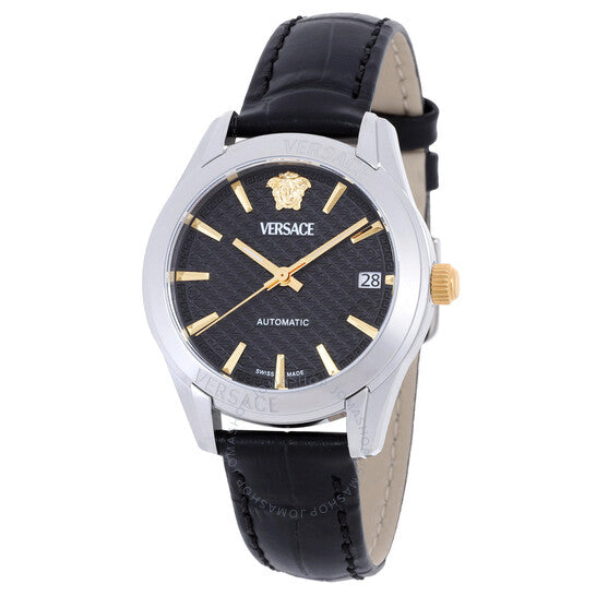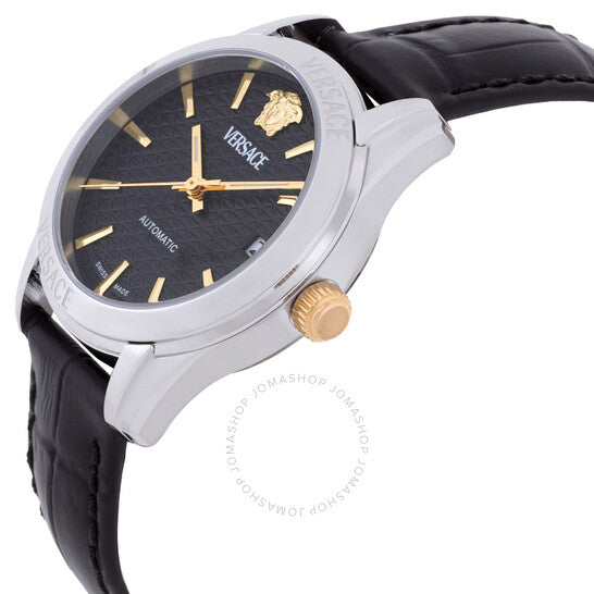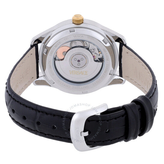 علبة من الفولاذ المقاوم للصدأ فضية اللون مع سوار جلدي أسود. إطار ثابت من الفولاذ المقاوم للصدأ فضي اللون. ميناء أسود بعقارب ذهبية اللون وعلامات ساعات. نوع الميناء: تناظري. عرض التاريخ عند موضع الساعة 3. آلية حركة أوتوماتيكية. زجاج ياقوت مقاوم للخدش. تاج قابل للسحب/الدفع. غطاء خلفي صلب. شكل دائري، مقاس العلبة: 35 مم، سمكها: 10 مم. عرض السوار: 16 مم. مشبك بإبزيم. مقاومة للماء حتى عمق 50 مترًا / 165 قدمًا. الوظائف: التاريخ، الساعة، الدقائق، الثانية. سلسلة Greca Classic. تصميم كاجوال. علامة الساعة: صناعة سويسرية. ساعة Versace Greca Classic أوتوماتيكية نسائية بمينا أسود VESCA0124.