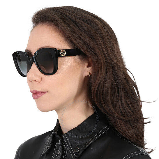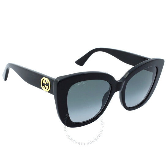 نظارات شمسية من غوتشي. رقم السلسلة: GG0327S. رمز اللون: 001. الشكل: فراشة. عرض العدسة: 52 مم. جسر العدسة: 20 مم. طول الذراع: 140 مم. حماية 100% من الأشعة فوق البنفسجية. غير مستقطبة. مادة الإطار: بلاستيك. لون الإطار: أسود. نوع العدسات: رمادي. نمط الحافة: حافة كاملة. رمز UPC/EAN: 889652155777. نظارات شمسية نسائية من غوتشي رمادية بتصميم فراشة GG0327S 001 52.
