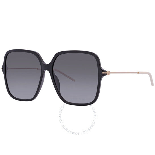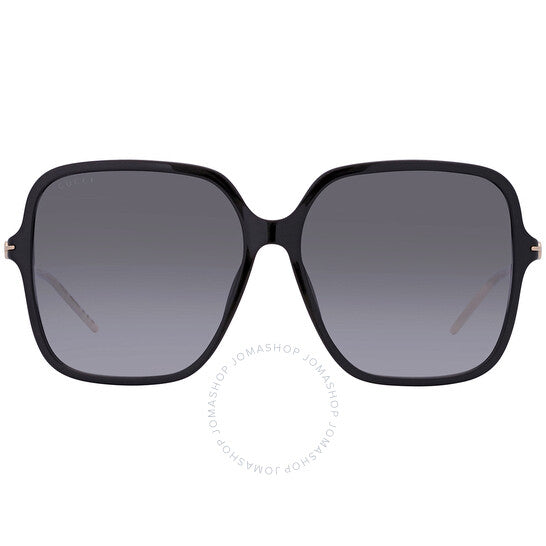 نظارات شمسية من غوتشي. رقم السلسلة: GG1267S. رمز اللون: 001. الشكل: فراشة. عرض العدسة: 60 مم. جسر العدسة: 15 مم. طول الذراع: 145 مم. حماية 100% من الأشعة فوق البنفسجية. مادة الإطار: أسيتات معاد تدويره. لون الإطار: أسود/ذهبي. نوع العدسات: رمادي. نمط الحافة: حافة كاملة. رمز UPC/EAN: 889652415802. نظارات شمسية نسائية من غوتشي بتصميم فراشة رمادية GG1267S 001 60.