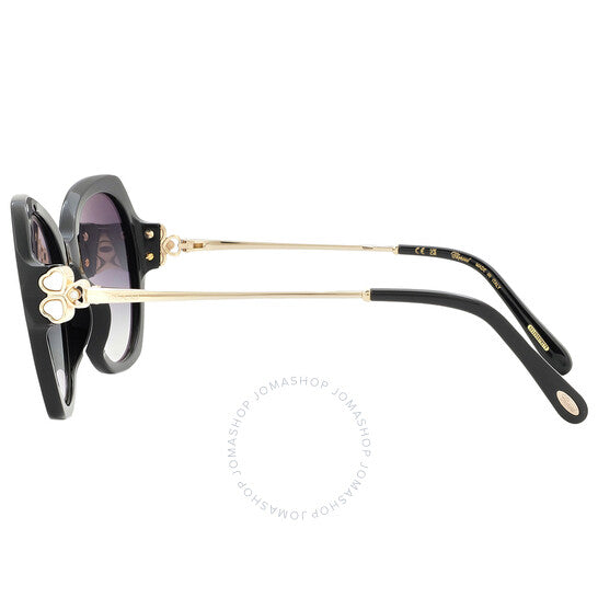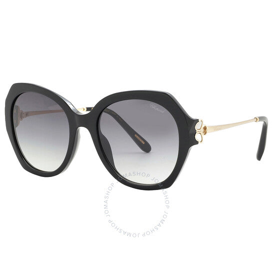 نظارات شمسية من شوبارد. رقم السلسلة: SCH354V. رمز اللون: 0700. الشكل: فراشة. عرض العدسة: 54 مم. جسر العدسة: 19 مم. طول الذراع: 135 مم. حماية 100% من الأشعة فوق البنفسجية. غير مستقطبة. مادة الإطار: أسيتات. لون الإطار: أسود لامع. نوع العدسات: رمادي. نمط الحافة: حافة كاملة. رمز UPC/EAN: 190605470558. نظارات شمسية نسائية من شوبارد بتصميم فراشة رمادية SCH354V 0700 54.