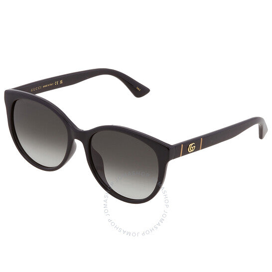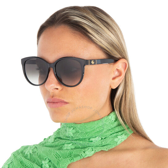 نظارات شمسية من غوتشي. رقم السلسلة: GG0636SK. رمز اللون: 001. الشكل: عين القطة. عرض العدسة: 56 مم. جسر العدسة: 17 مم. طول الذراع: 150 مم. حماية 100% من الأشعة فوق البنفسجية. مادة الإطار: معدن. لون الإطار: أسود. نوع العدسات: رمادي. نمط الحافة: حافة كاملة. رمز UPC/EAN: 889652278896. نظارات شمسية نسائية من غوتشي رمادية بتصميم عين القطة GG0636SK 001 56.