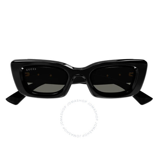 نظارات شمسية من غوتشي. رقم السلسلة: GG1827S. رمز اللون: 001. الشكل: عين القطة. عرض العدسة: 49 مم. جسر العدسة: 22 مم. طول الذراع: 145 مم. حماية 100% من الأشعة فوق البنفسجية. غير مستقطبة. مادة الإطار: بلاستيك. لون الإطار: أسود. نوع العدسات: رمادي. نمط الحافة: حافة كاملة. رمز UPC/EAN: 889652527147. نظارات شمسية نسائية من غوتشي رمادية بتصميم عين القطة GG1827S 001 49.