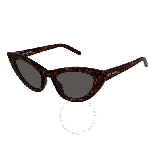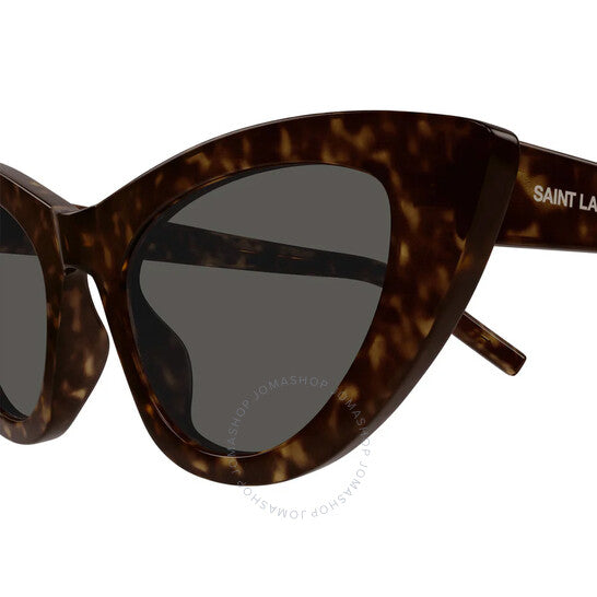 نظارات شمسية من سان لوران. رقم السلسلة: SL 213 LILY. رمز اللون: 016. الشكل: عين القطة. عرض العدسة: 52 مم. جسر العدسة: 21 مم. طول الذراع: 145 مم. حماية 100% من الأشعة فوق البنفسجية. غير مستقطب. مادة الإطار: أسيتات. لون الإطار: هافانا. نوع العدسات: رمادي. نمط الحافة: حافة كاملة. رمز UPC/EAN: 889652508818. نظارات شمسية نسائية من سان لوران، عين القطة رمادية، SL 213 LILY 016 52.