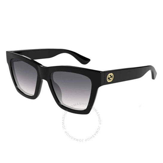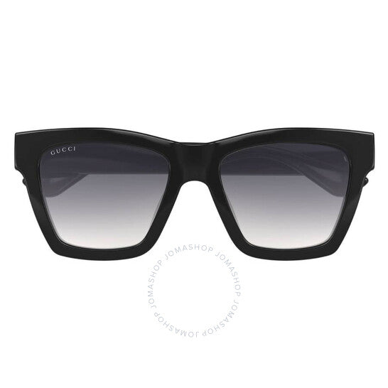نظارات شمسية من غوتشي. رقم السلسلة: GG1714S. رمز اللون: 001. الشكل: عين القطة. عرض العدسة: 54 مم. جسر العدسة: 19 مم. طول الذراع: 140 مم. حماية 100% من الأشعة فوق البنفسجية. غير مستقطبة. مادة الإطار: بلاستيك. لون الإطار: أسود لامع. نوع العدسات: رمادي متدرج. نمط الحافة: حافة كاملة. رمز UPC/EAN: 889652502687. نظارات شمسية نسائية من غوتشي، عين القطة، رمادية متدرجة، GG1714S 001 54.