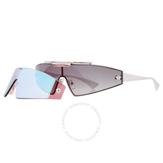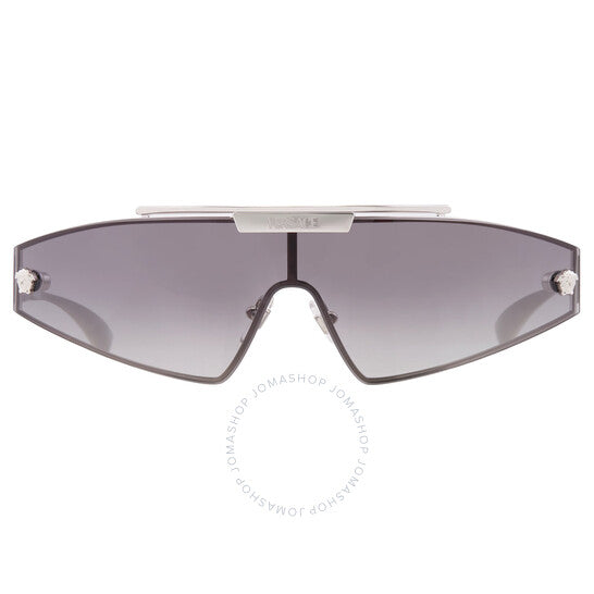 نظارات شمسية من فيرساتشي. رقم السلسلة: VE2265. رمز اللون: 100011. الشكل: درع. عرض العدسة: 144 مم. جسر العدسة: 0 مم. طول الذراع: 120 مم. حماية 100% من الأشعة فوق البنفسجية. غير مستقطب. مادة الإطار: معدن. لون الإطار: فضي. نوع العدسات: رمادي متدرج. نمط الحافة: شبه بدون حافة. رمز UPC/EAN: 8056597943680. نظارات شمسية نسائية من فيرساتشي، درع رمادي متدرج، VE2265 100011 144.