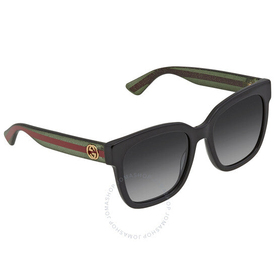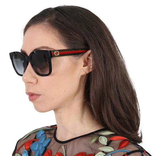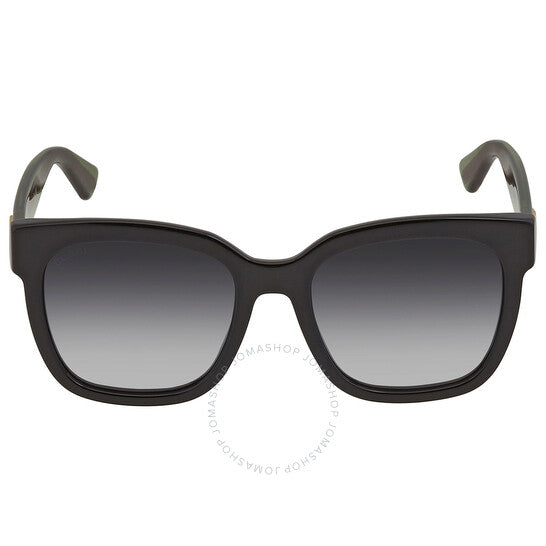 نظارات شمسية من غوتشي. رقم السلسلة: GG0034SN. رمز اللون: 002. الشكل: مربع. عرض العدسة: 54 مم. جسر العدسة: 20 مم. طول الذراع: 140 مم. حماية 100% من الأشعة فوق البنفسجية. مادة الإطار: بلاستيك. لون الإطار: أخضر/أسود. نوع العدسات: رمادي متدرج. نمط الحافة: حافة كاملة. رمز UPC/EAN: 889652386362. نظارات شمسية غوتشي مربعة رمادية متدرجة للسيدات GG0034SN 002 54.