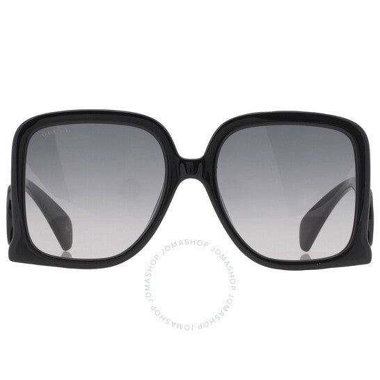 نظارات شمسية من غوتشي. رقم السلسلة: GG1326S. رمز اللون: 001. الشكل: مربع. عرض العدسة: 58 مم. جسر العدسة: 19 مم. طول الذراع: 140 مم. حماية 100% من الأشعة فوق البنفسجية. مادة الإطار: بلاستيك. لون الإطار: أسود. نوع العدسات: رمادي متدرج. نمط الحافة: حافة كاملة. رمز UPC/EAN: 889652412597. نظارات شمسية غوتشي رمادية متدرجة مربعة للنساء GG1326S 001 58.